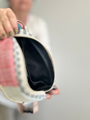 Tkaniny, które wykorzystuję do swoich projektow to przede wszystkim len i bawełna. Cenię ich naturalność, ale sięgam także do tkanin innych jak welury czy jeans i sztruks. Te głównie wykorzystuję do upcyklingowych projektów takich jak patchworkowe torby, nerki czy kosmetyczki,